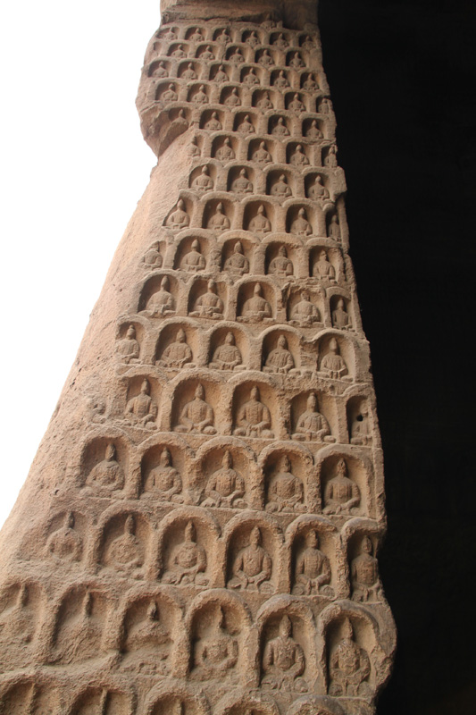 Caves 9 is notable for their front pillars and figures bearing musical insruments