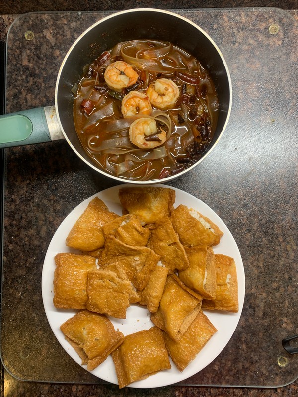 Day 142 - Sichuan boil shrimp + inarizushi