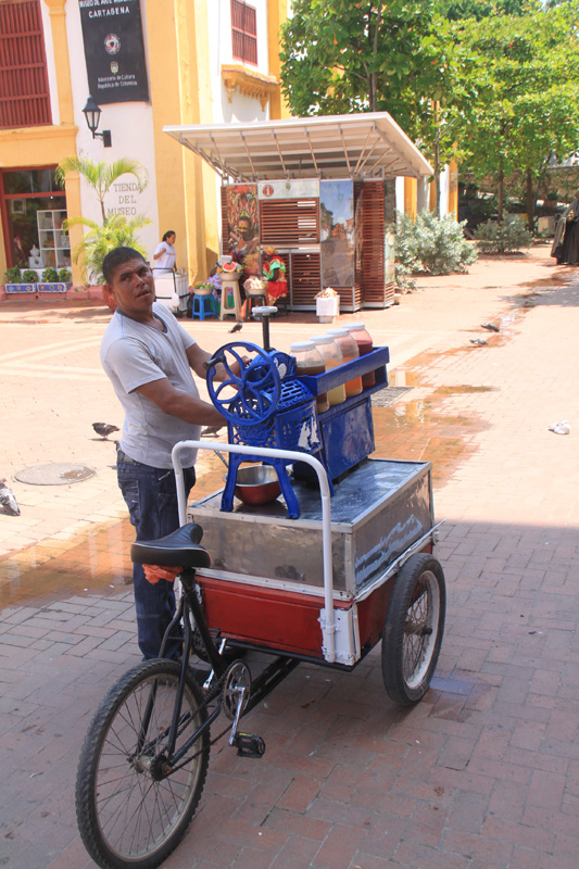 Colorful Colombian fruit vendor