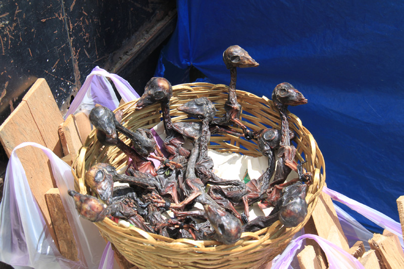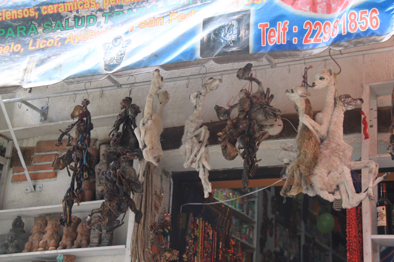 llama fetuses and dried frogs for Aymara rituals