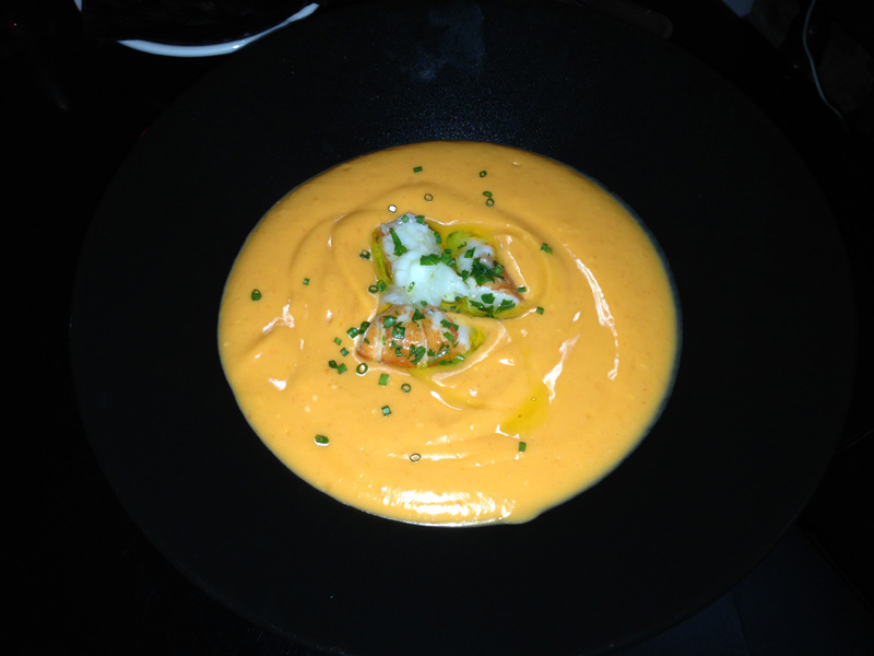 Cream of pumpkin with shrimp