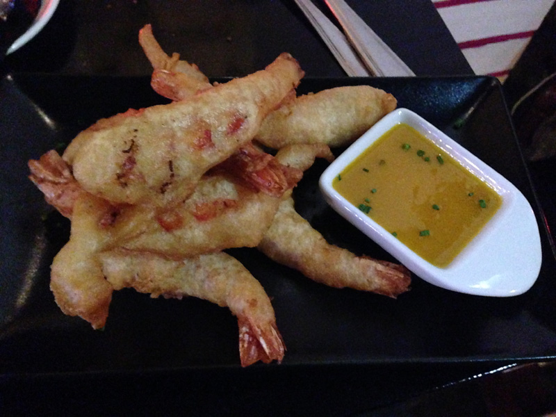 Tempura prawns with mango and ginger sause