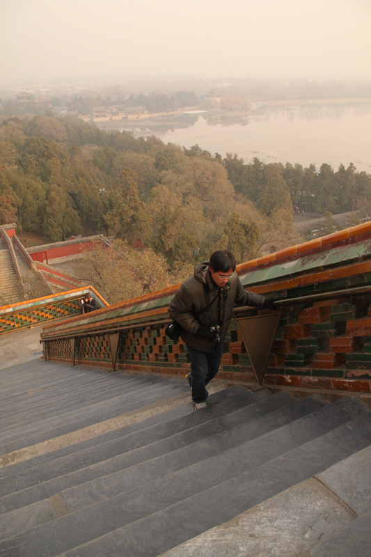 Eddie walking up these long stairs