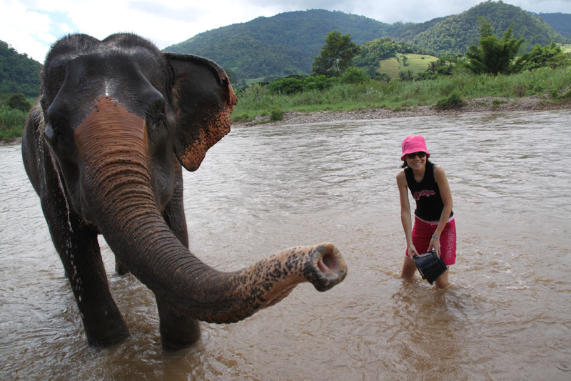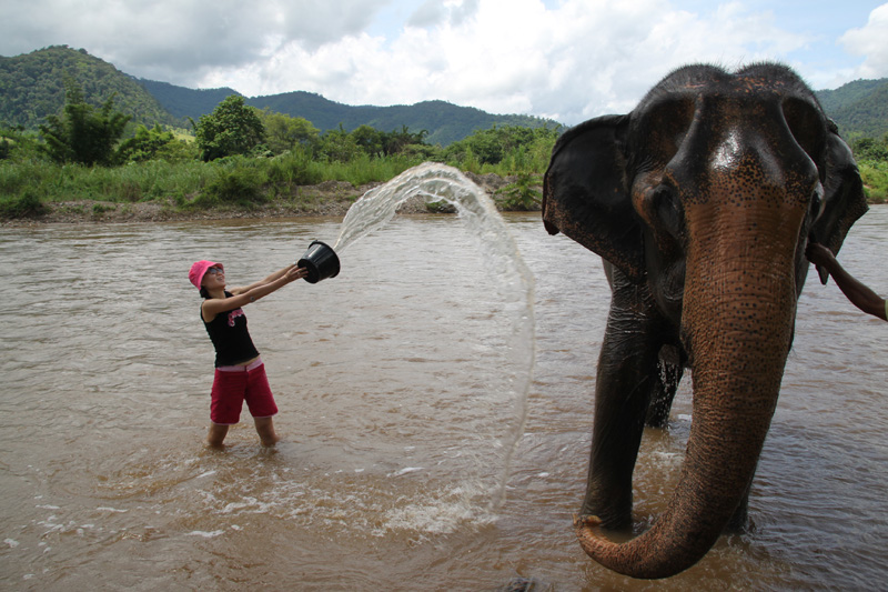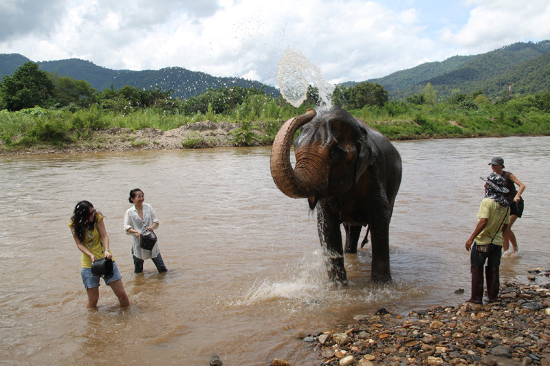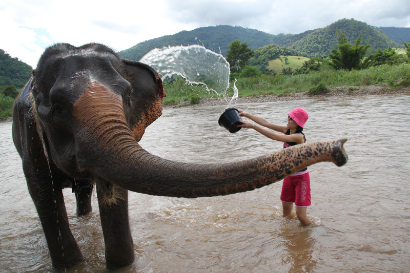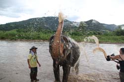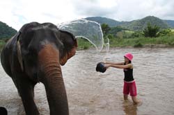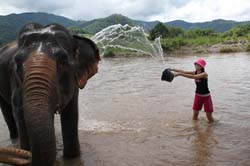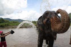 Splashing water to the elephant