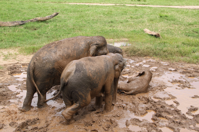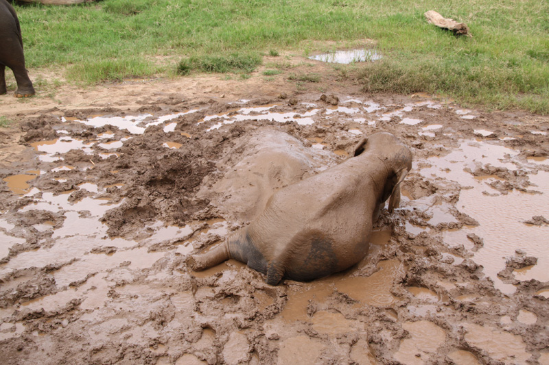 Mud is sun block for elephant