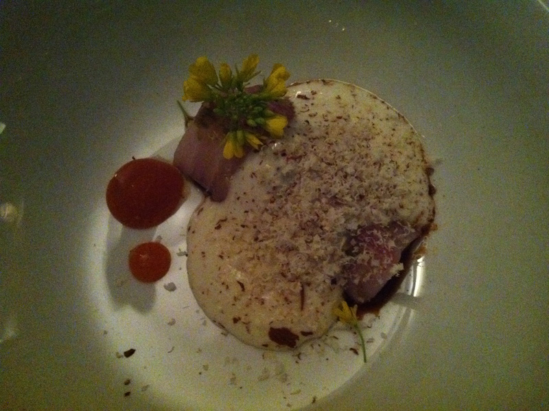 Kampachi sashimi, whipped tofu, sudachi and toasted buckwheat