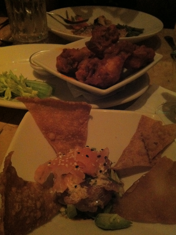 Buffalo wings and tuna tartare
