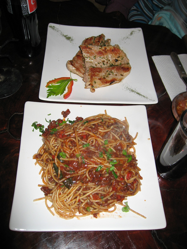 Sphatti bolognese & pork chop