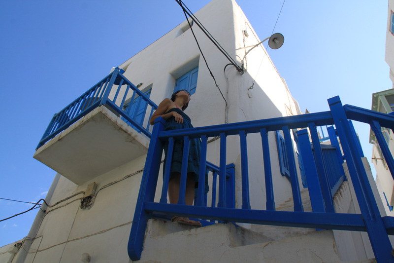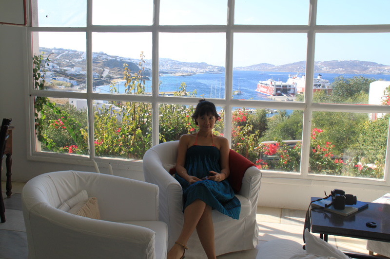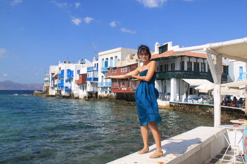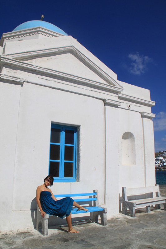 Me wearing blue to match the Mykonos
