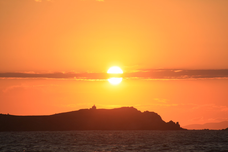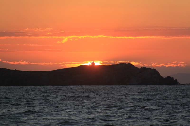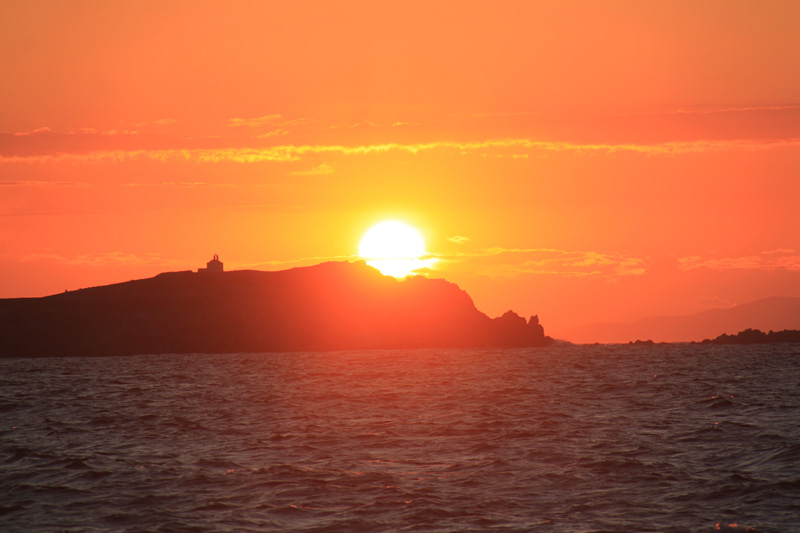 Sun is dropping behind the Georgios Nisida Island