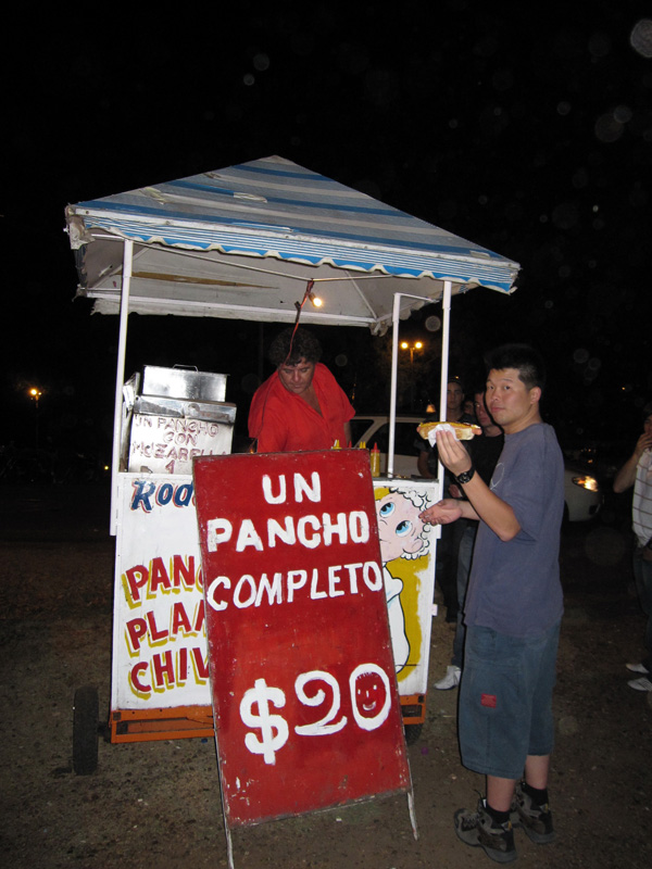 Kalon getting *un pancho* aka hotdog