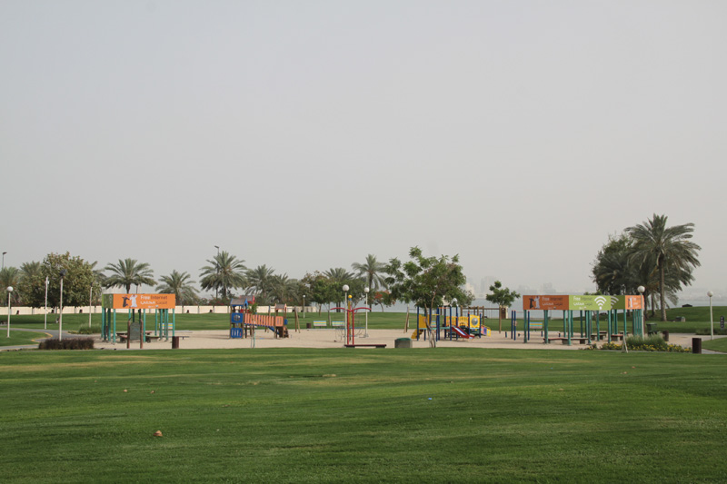 A long seaside promenade that curves around Doha Bay