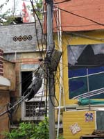 Telegraph pole with hundreds of extra wires on it