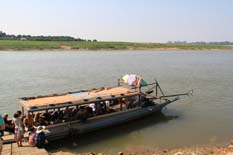 Crossing Nyit Nge river by ferry