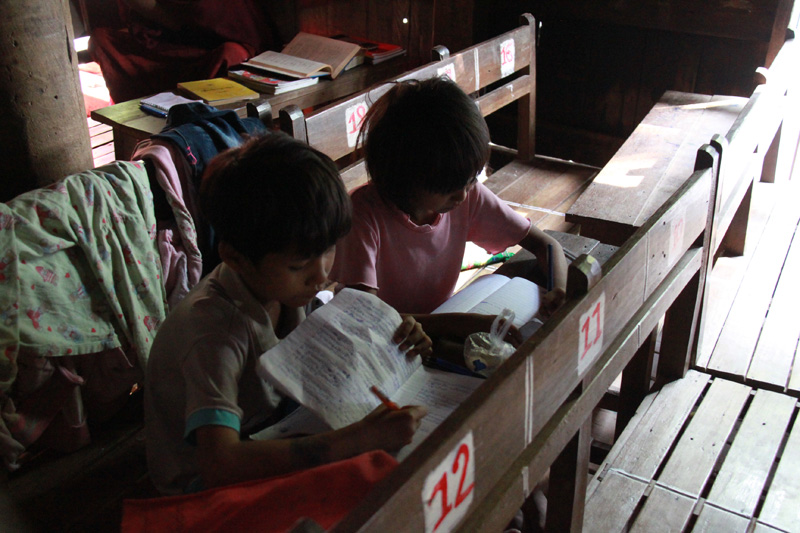 Kids studying in the dark