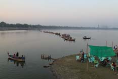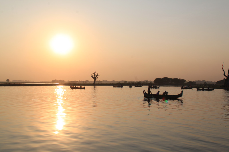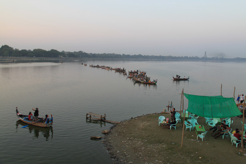 All these boats line up for a sunset over U Pein Bridge pic