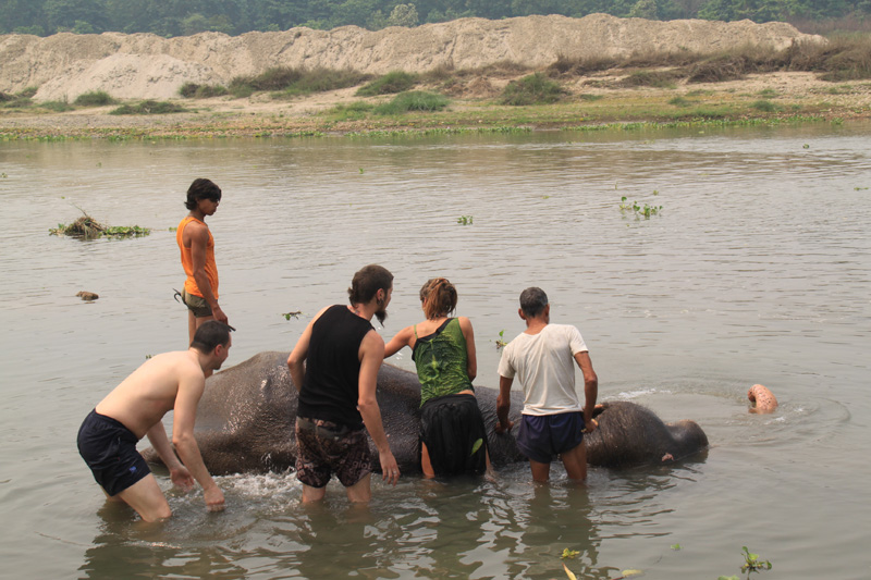 Bathing the elepant