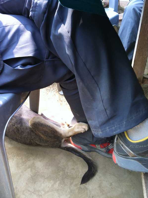 The dog found Mathew and then went to sleep
